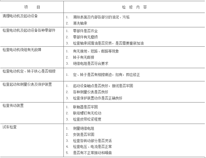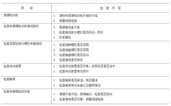 表1 電動機(jī)定期小修檢查項目表