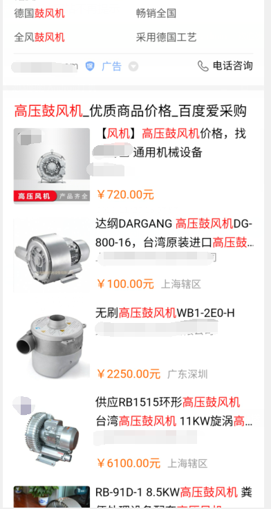 就比方我們搜索鼓風(fēng)機(jī)或者其他什么產(chǎn)品都可以,排在前面的基本上都被廣告占滿了,尤其是手機(jī)百度,廣告更是占滿了整個第一頁,廣告就跟之前的鬧得沸沸揚(yáng)揚(yáng)的魏則西事件是同樣的一個性質(zhì)。