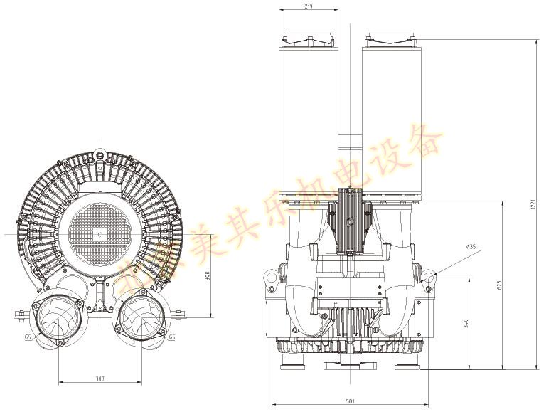 2GH940鼓風機參數(shù)性能表:只可立式安裝,5寸管螺紋
